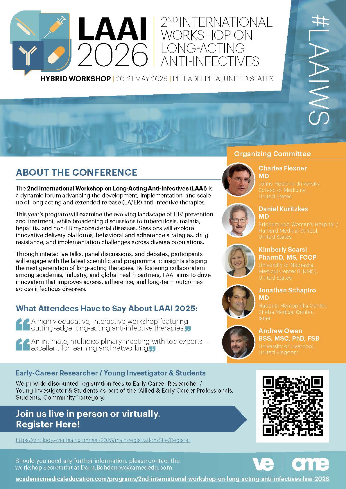 Through interactive talks, panel discussions, and debates, participants will engage with the latest scientific and programmatic insights shaping the next generation of long-acting therapies. By fostering collaboration among academia, industry, and global health partners, LAAI aims to drive innovation that improves access, adherence, and long-term outcomes across infectious diseases.